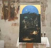 Daniele Cristallini pour l'importance que cette petite église prend cette exposition présente toutes les œuvres inédites, spécifiquement construites pour ce conteneur d'exposition particulier, un endroit sacré et silencieux qui se dresse à côté du petit cimetière du pays. L'auteur, à partir de l'endroit comme cadre d'une exposition idéale, choisit de créer toutes les peintures qui suivent le système traditionnel du retable, une œuvre qui dans toutes les églises que nous trouvons placées au-dessus de l'autel sur le mur arrière du presbytère. Cristallini utilise dans les travaux affichés de gradations de couleurs qui rappellent les tons qui se trouvent sur les murs de fresque selon le style ancien, et crée ainsi une connexion entre le passé et le présent contemporain, soulignant comment en retracant le fil de la couleur du temps et de l'histoire, l'histoire de l'art peut être vue transversalement, mettant en évidence les points de contact entre le lieu et les artistes qui l'ont animé.