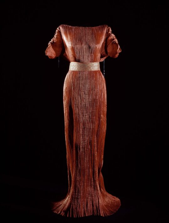 Juste le Delphos immortel est le clé de voûte pour raconter la contribution révolutionnaire de la fortune à la mode: une robe intemporelle et sans coupure, créée pour libérer le corps et s'adapter à l'une de ses formes, aimée par les personnalités du cinéma et de la culture pop à nos jours, usée par Geraldine Chaplin à Barbara Streisand, le protecteur absolu dans les années Nineties dans le film The Wings of the Wherial to the Down. Une robe qui invente et breveté, littéralement, le « Made in Italie »: un mot jamais vu avant qu'il n'apparaisse sur l'étiquette de la robe, des décennies avant la naissance de ce concept dans les années 1950.