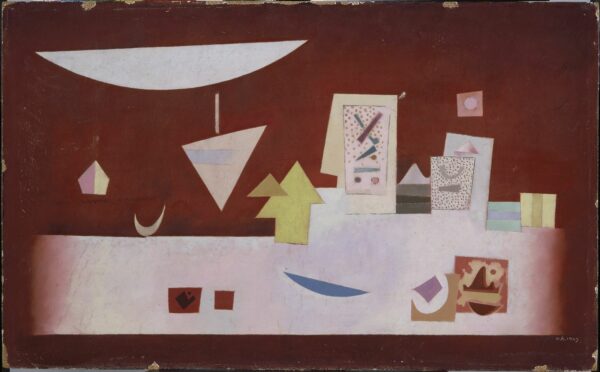 1930 à 1954 Au début, il y a les huiles sur toile et les cartes des années trente, parmi lesquelles une composition astractiste extraordinaire (sans titre, 1930 – Huile sur toile, 60x60cm) doit être signalée, qui a été exposée dans le personnel que le peintre a mis en place au Bauhaus à la fin du printemps 1930.