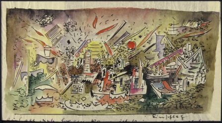 Dans le WEHRMACHT, il est resté prisonnier de 1940 à 1946. Les œuvres réalisées dans cette période angoissée sont des aquarelles effectuées sur les feuilles minces des lettres envoyées à sa femme et ses amis, et il y a aussi des photographies vintage du théâtre qui documentent les terribles conséquences de la guerre; Exposition Perla à la Fondation Biscuzzi | Rimbaud Seuls les impressions de format d'origine ont été sélectionnées, touchant leur « pauvreté », qui va de pair avec une puissance expressive