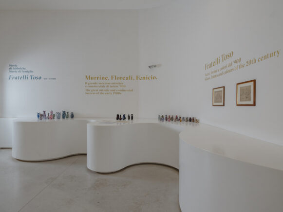 Plus de 250 pièces exposées pour retracer l'extraordinaire histoire artistique et entrepreneuriale de la Fratelli Toso Vetreria historique: fondée en 1854, c'était le premier four artistique qui a recommencé après les décennies et les activités de l'île jusqu'à la faille de la foyer de la sérénise et de la Domination par les Emboursbourg. Une entreprise familiale qui a traversé des époques et des styles, laissant une marque indélébile dans l'histoire du verre artistique.