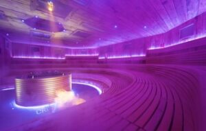 Ici, la route interne se régénère avec un labyrinthe de piscines d'hydromassage, de l'eau salée, du bain turc, du sauna bio, du sauna finlandais 90 ° pour les rituels aufguss, une zone de refroidissement, une voie de Kneipp et 3 salles de relaxation personnalisées avec thérapie et arôme de foin. À l'extérieur, un jardin de conifères et de brasera accueille les nouvelles piscines d'hydromassage avec de l'eau à 35 degrés par deux personnes, des saunas et des douches expérientielles pour un bien-être alpin immergé dans la nature. LE'Sauna de l'événement alpin C'est le joyau de cette nouvelle solution architecturale: L'un des plus grands saunas finlandais d'Europe accueille jusqu'à 100 personnes pour les rituels Aufguss et le show aufguss quotidiennement.